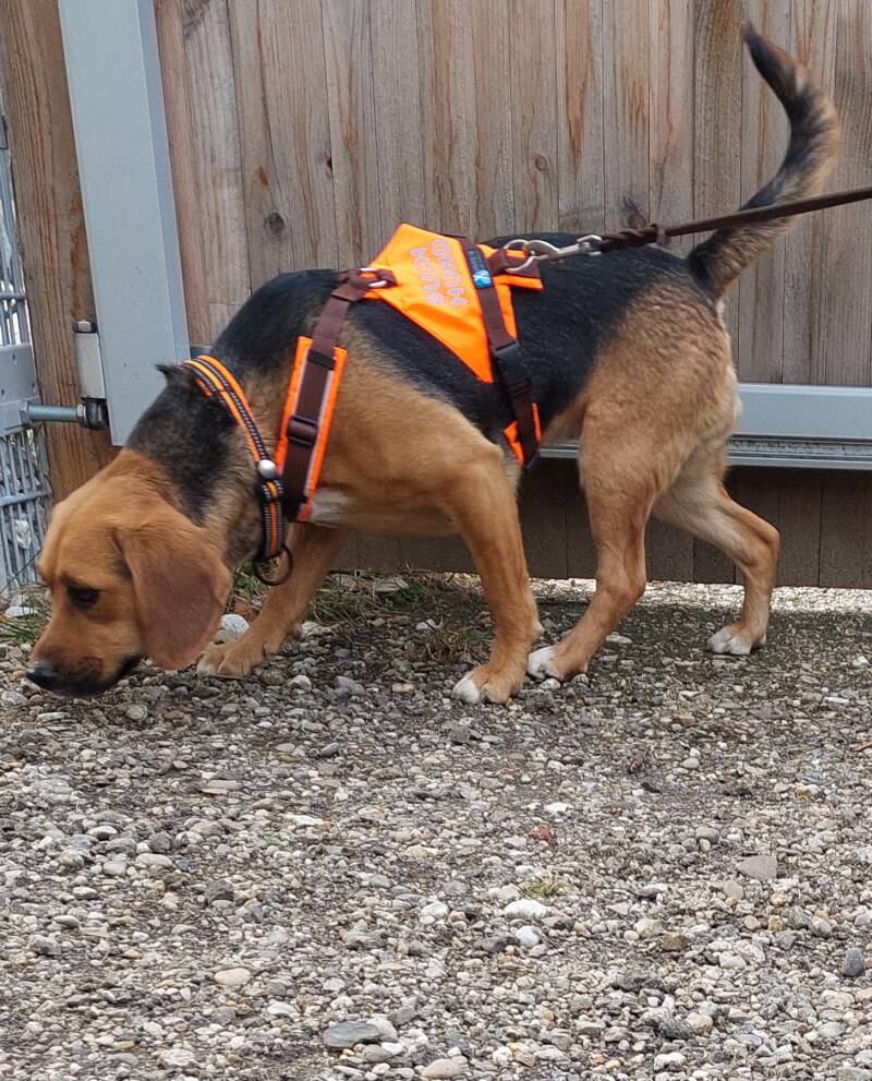 - Hund muss an ein Hundegeschirr gewohnt sein.